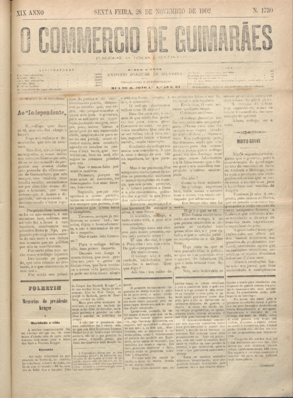Comércio de Guimarães, nº 1730, de 28/11/1902
