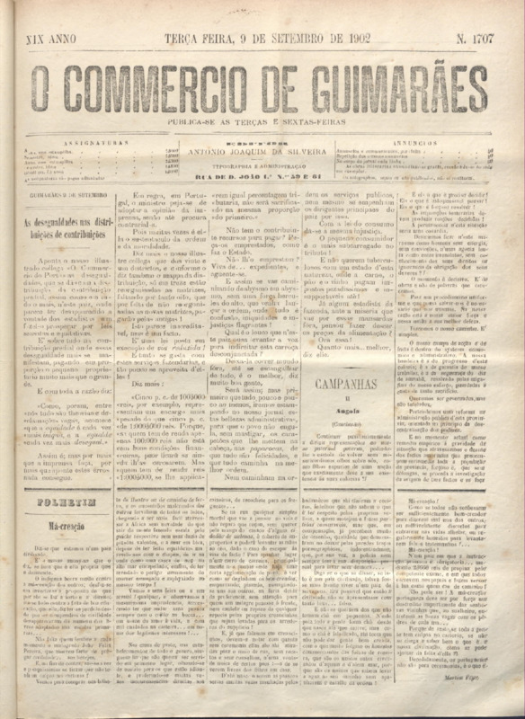 Comércio de Guimarães, nº 1710, de 19/09/1902