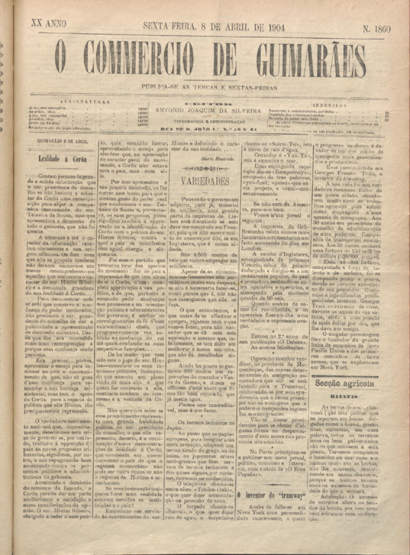 Comércio de Guimarães, nº 1860, de 12/04/1904