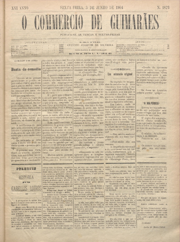 Comércio de Guimarães, nº 1875, de 03/06/1904
