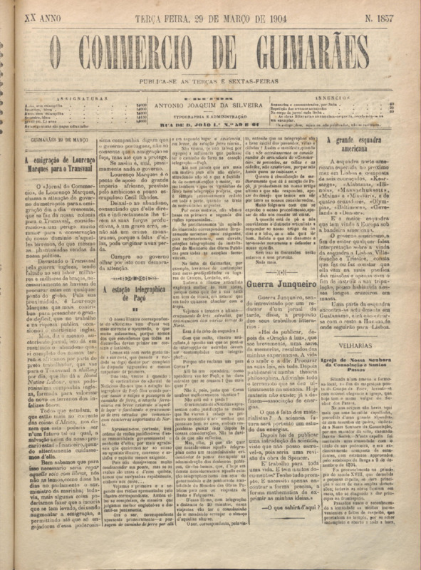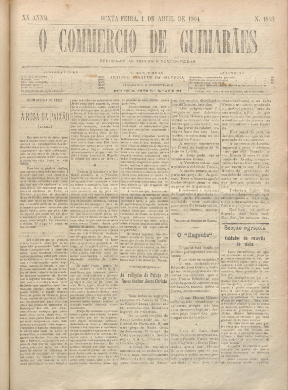 Comércio de Guimarães, nº 1857, de 01/04/1904