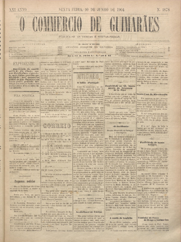 Comércio de Guimarães, nº 1877, de 10/06/1904