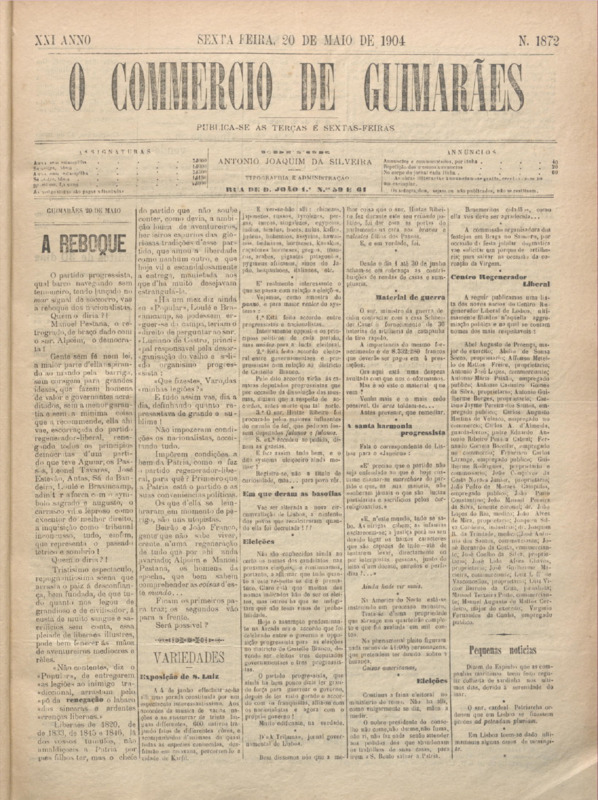 Comércio de Guimarães, nº 1871, de 20/05/1904