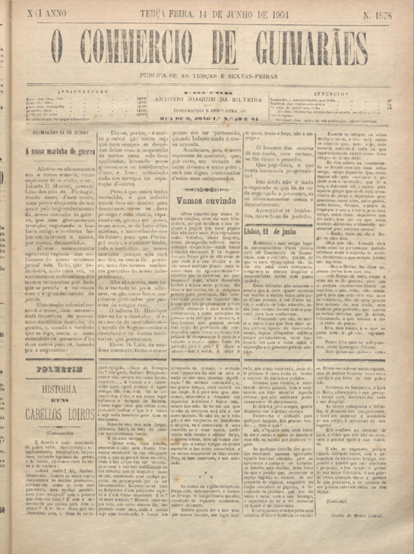 Comércio de Guimarães, nº 1878, de 14/06/1904