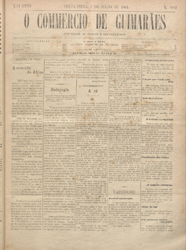 Comércio de Guimarães, nº 1882, de 01/07/1904