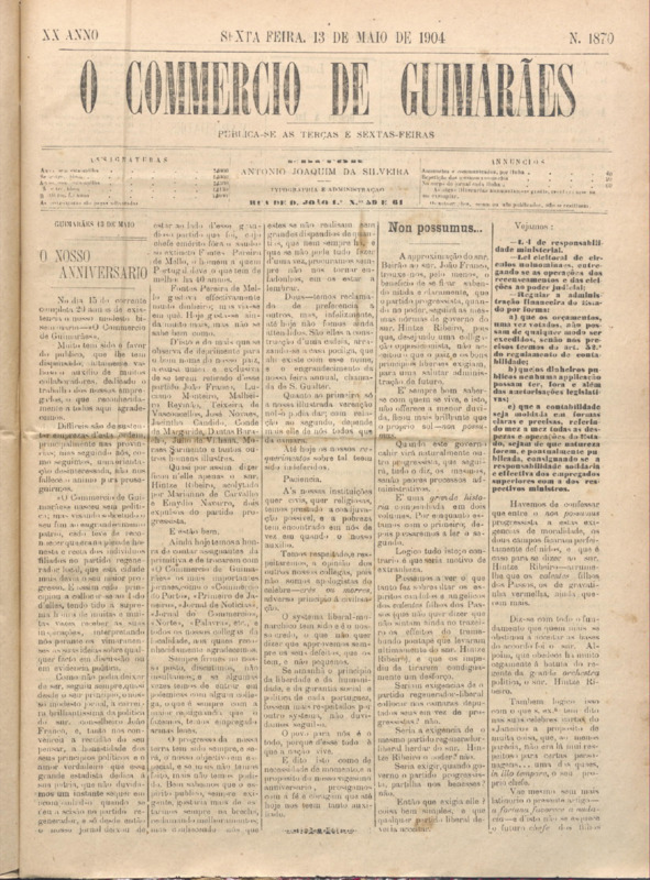 Comércio de Guimarães, nº 1869, de 13/05/1904