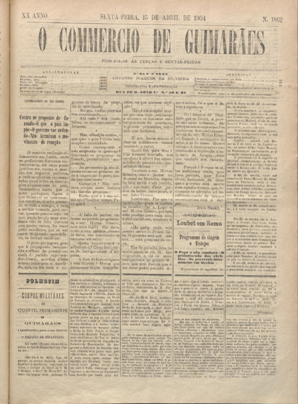 Comércio de Guimarães, nº 1861, de 15/04/1904