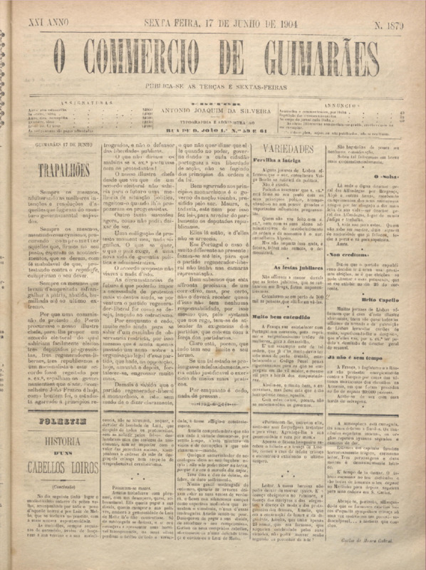 Comércio de Guimarães, nº 1879, de 17/06/1904