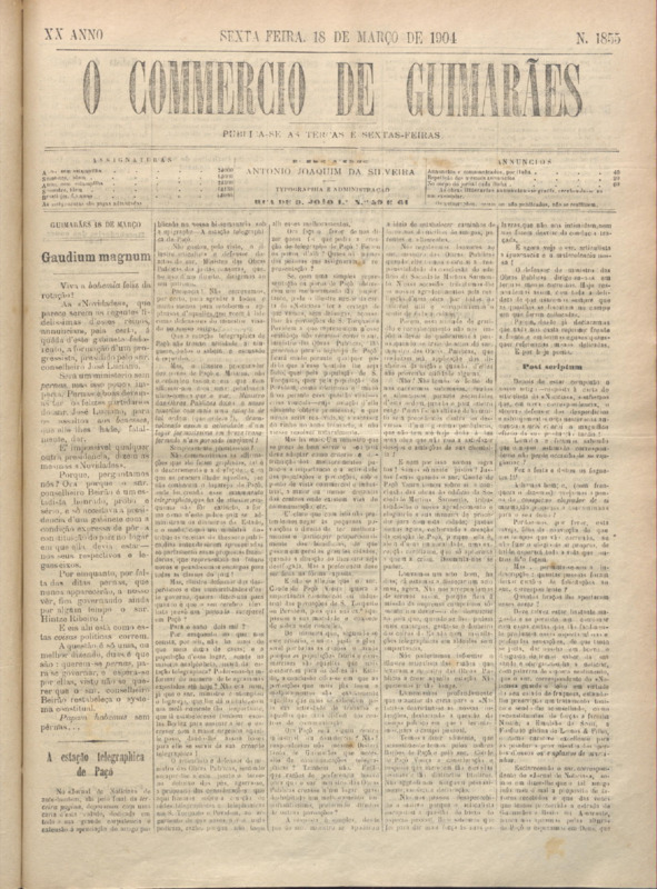 Comércio de Guimarães, nº 1855, de 22/03/1904