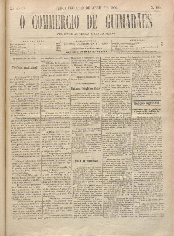 Comércio de Guimarães, nº 1862, de 19/04/1904