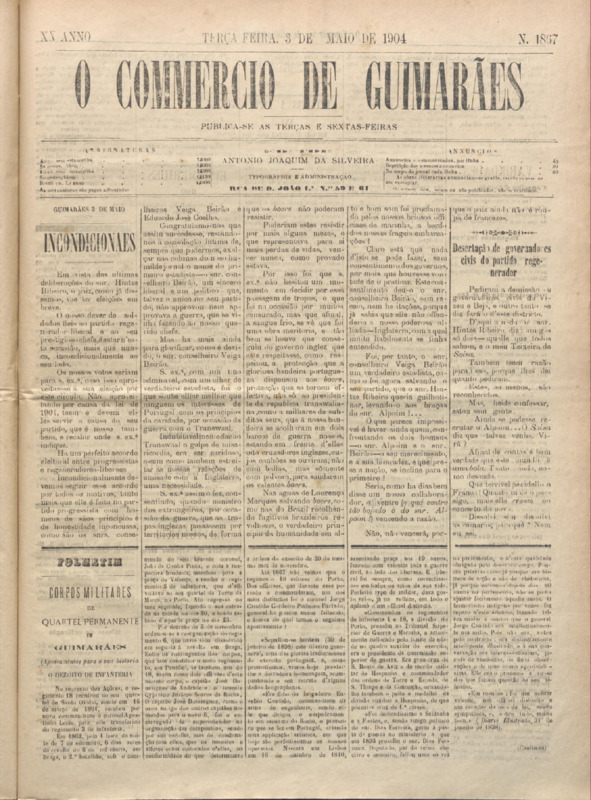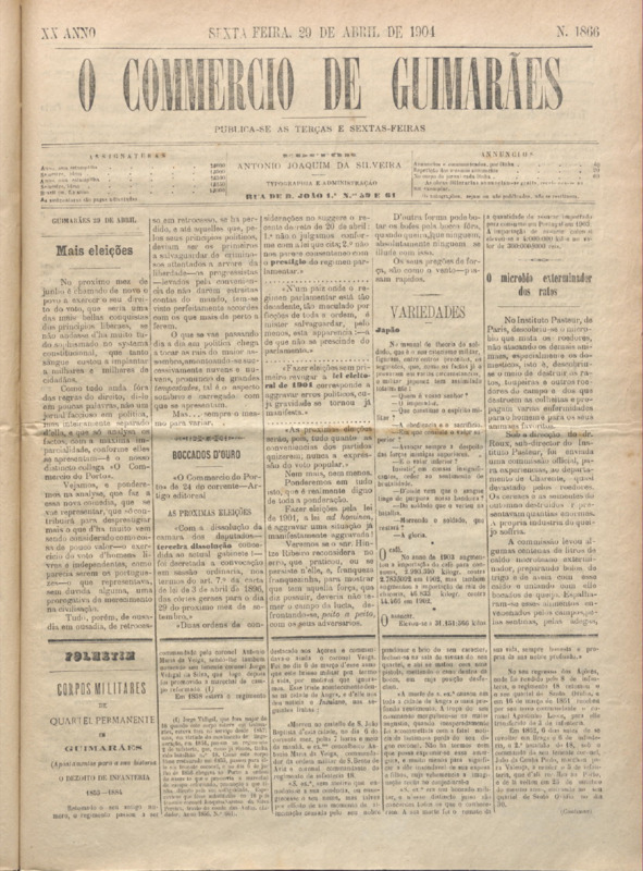Comércio de Guimarães, nº 1866, de 03/05/1904