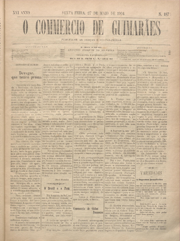Comércio de Guimarães, nº 1873, de 27/05/1904