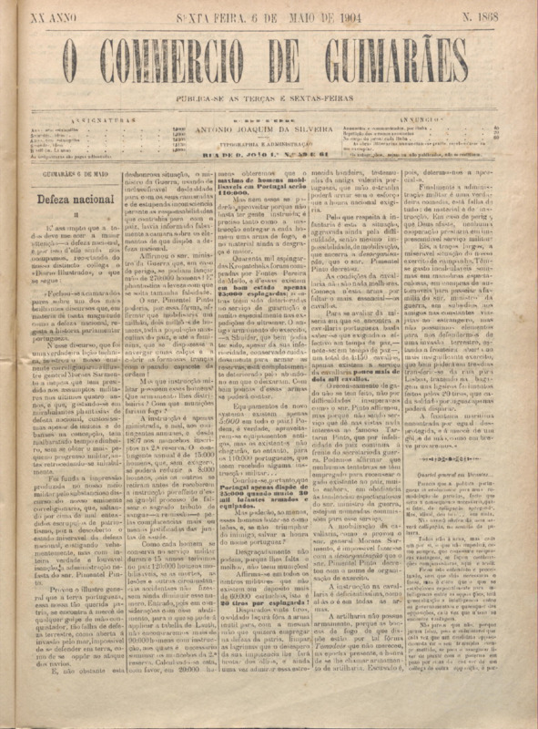 Comércio de Guimarães, nº 1868, de 10/05/1904