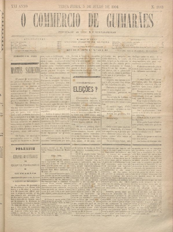 Comércio de Guimarães, nº 1883, de 05/07/1904