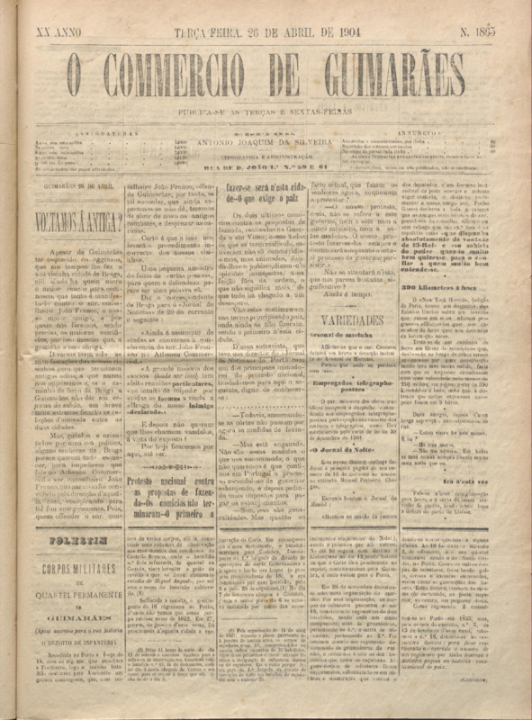 Comércio de Guimarães, nº 1864, de 26/04/1904