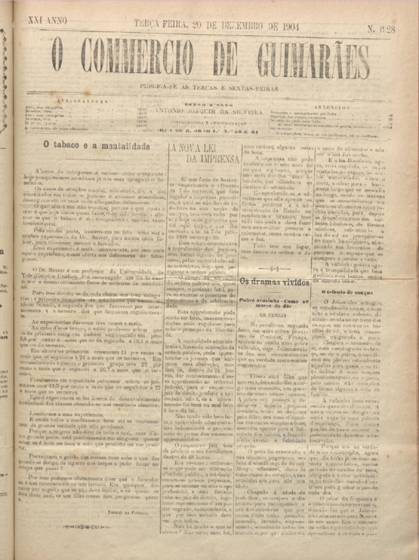 Comércio de Guimarães, nº 1928, de 20/12/1904
