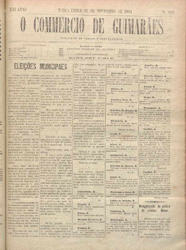 Comércio de Guimarães, nº 1919, de 15/11/1904