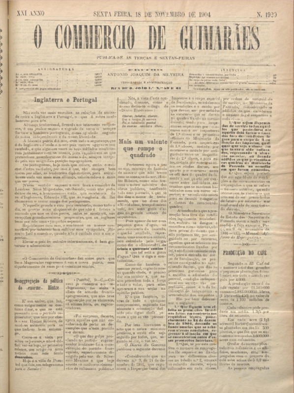 Comércio de Guimarães, nº 1920, de 18/11/1904