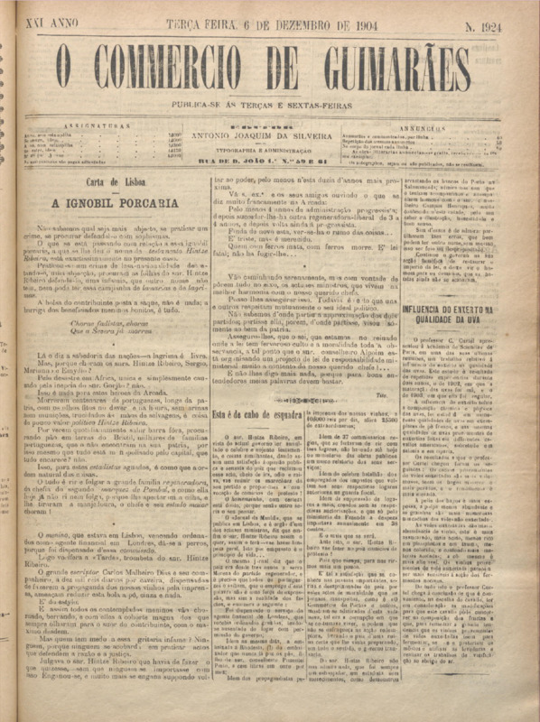Comércio de Guimarães, nº 1924, de 06/12/1904
