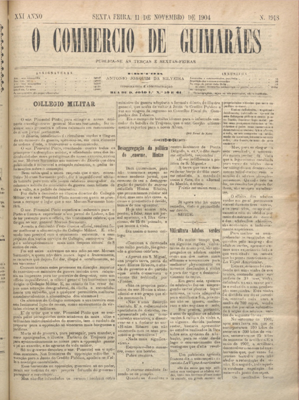 Comércio de Guimarães, nº 1918, de 11/11/1904