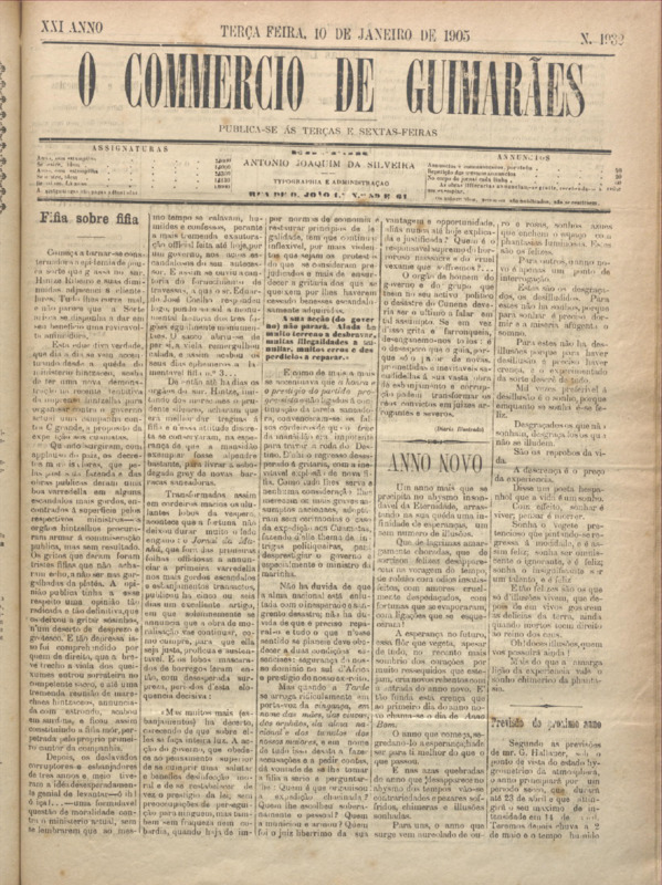 Comércio de Guimarães, nº 1932, de 10/01/1905