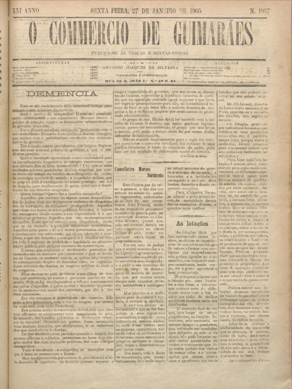 Comércio de Guimarães, nº 1937, de 27/01/1905