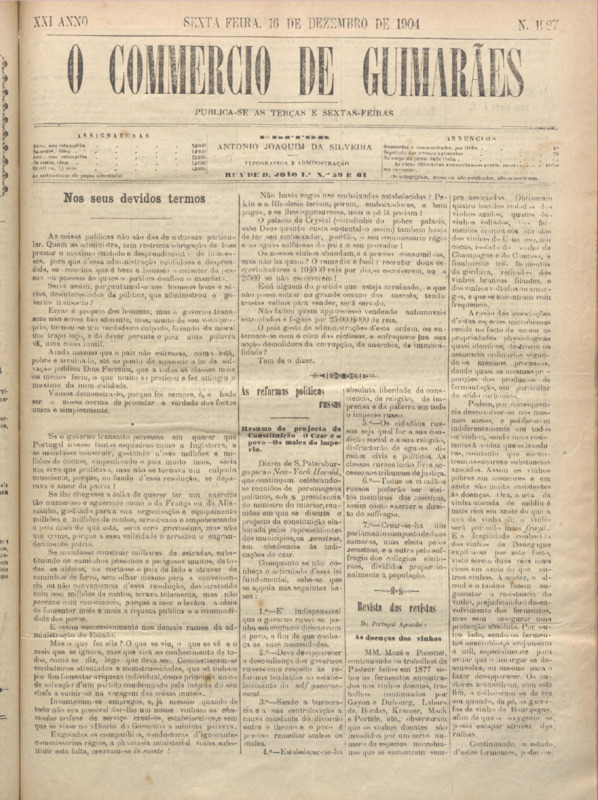 Comércio de Guimarães, nº 1927, de 16/12/1904