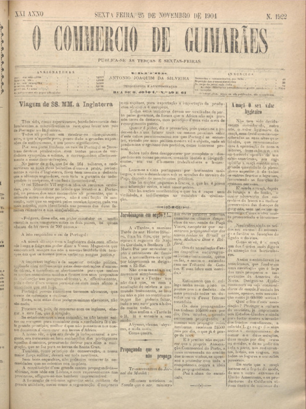 Comércio de Guimarães, nº 1922, de 25/11/1904