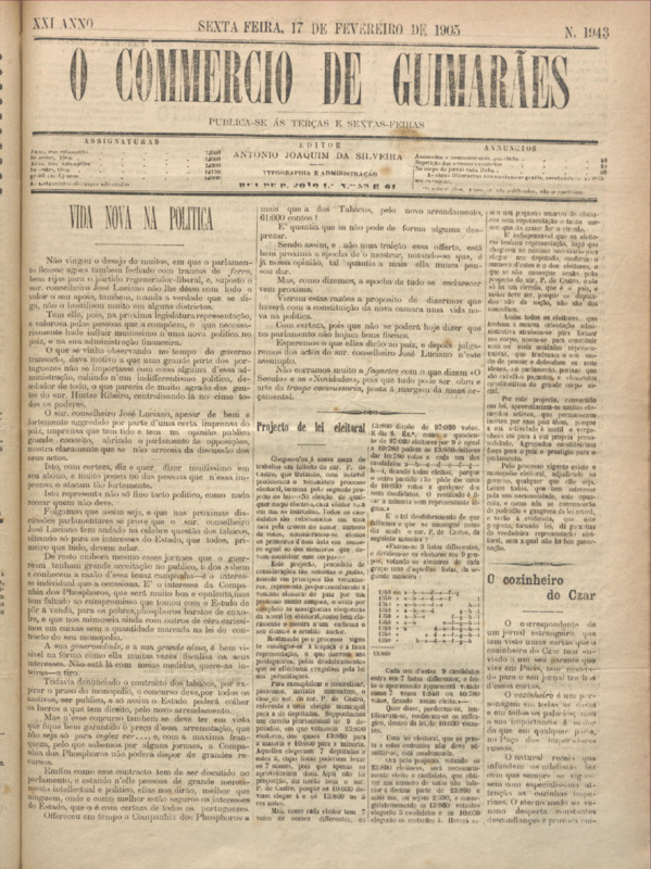 Comércio de Guimarães, nº 1943, de 17/02/1905
