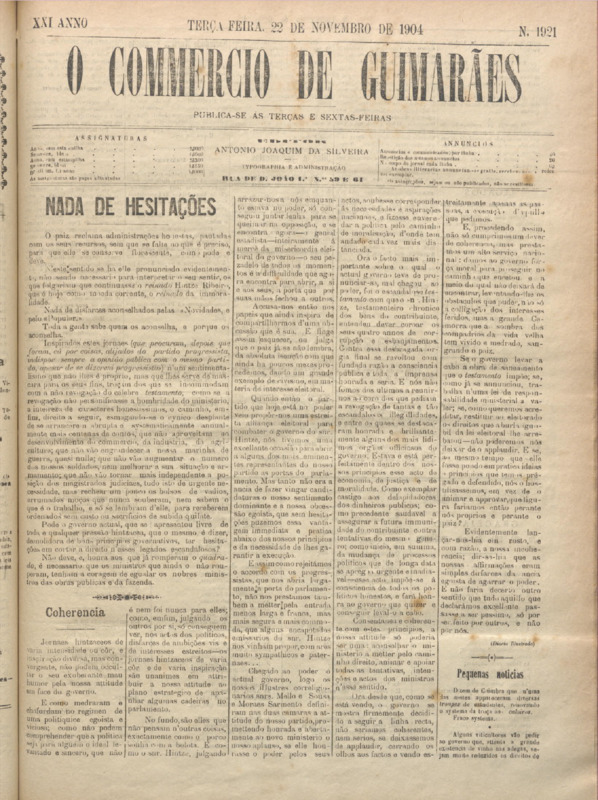 Comércio de Guimarães, nº 1921, de 22/11/1904