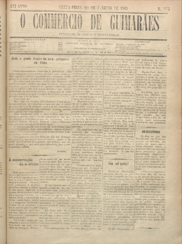 Comércio de Guimarães, nº 1935, de 20/01/1905