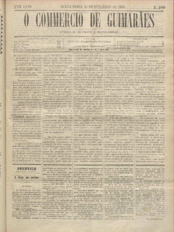 Comércio de Guimarães, nº 1999, de 15/09/1905