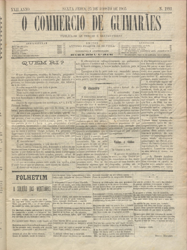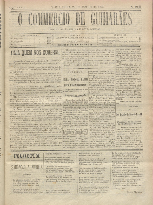 Comércio de Guimarães, nº 1992, de 22/08/1905