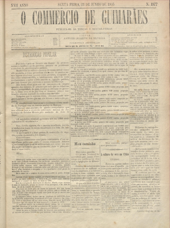 Comércio de Guimarães, nº 1977, de 23/06/1905