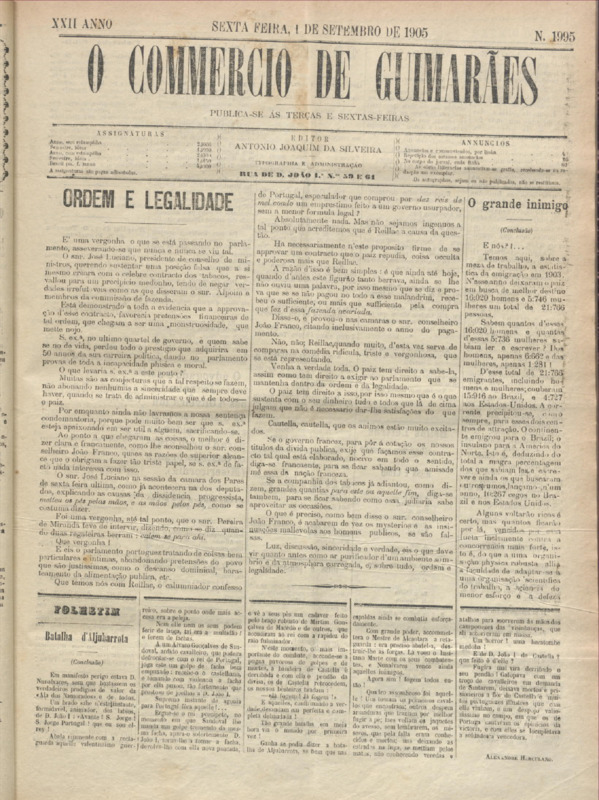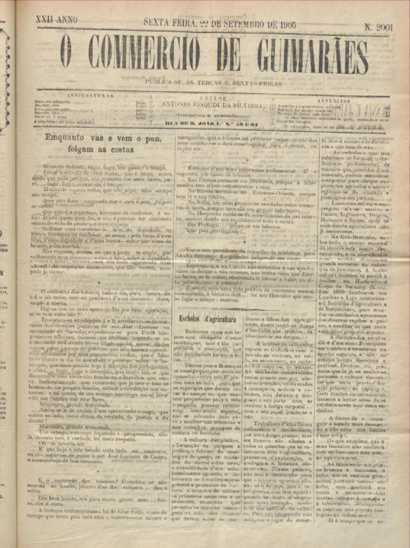 Comércio de Guimarães, nº 2001, de 22/09/1905