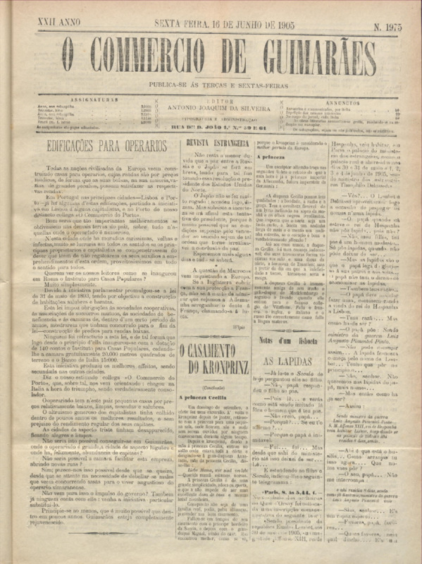 Comércio de Guimarães, nº 1975, de 16/06/1905