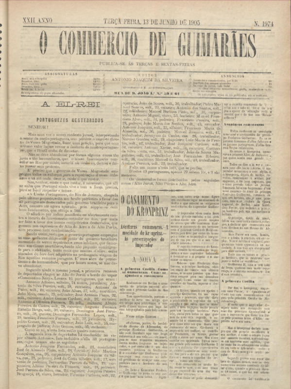 Comércio de Guimarães, nº 1974, de 13/06/1905