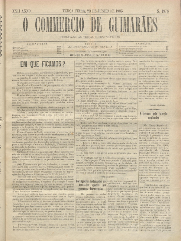 Comércio de Guimarães, nº 1976, de 20/06/1905