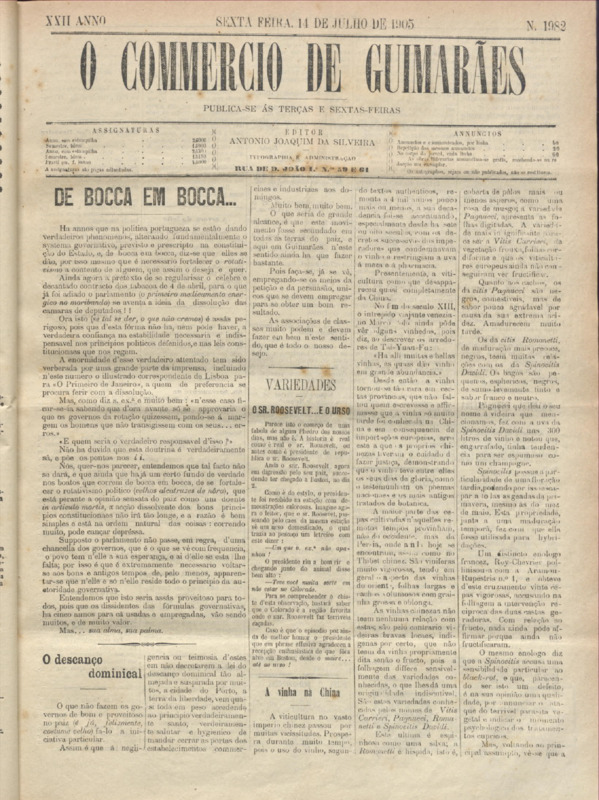 Comércio de Guimarães, nº 1982, de 14/07/1905