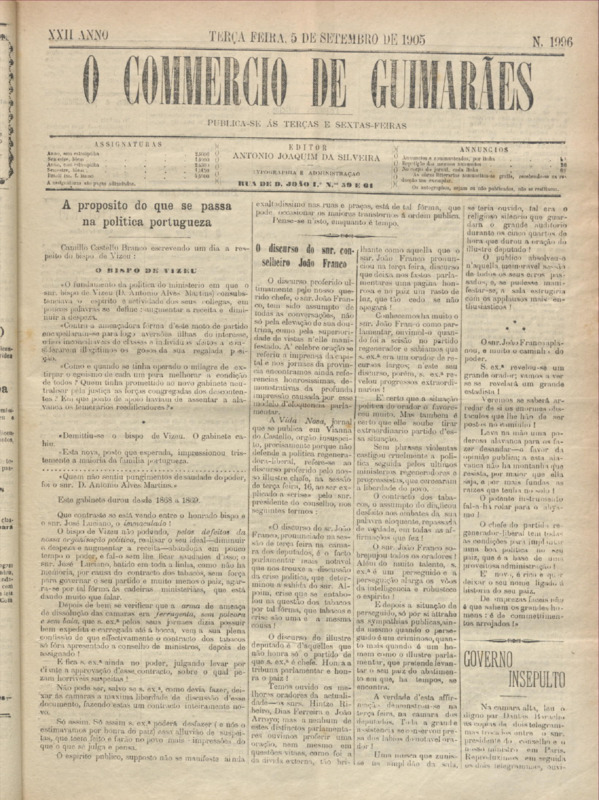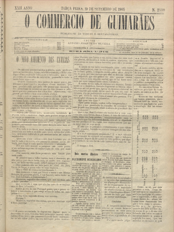 Comércio de Guimarães, nº 2000, de 19/09/1905