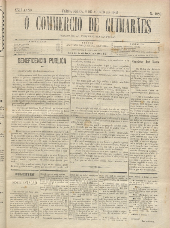 Comércio de Guimarães, nº 1989, de 08/08/1905