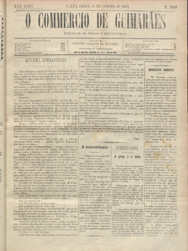 Comércio de Guimarães, nº 1988, de 04/08/1905