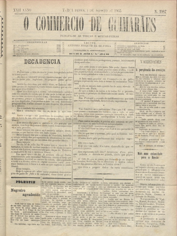 Comércio de Guimarães, nº 1987, de 01/08/1905