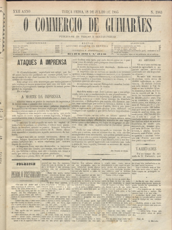 Comércio de Guimarães, nº 1983, de 18/07/1905