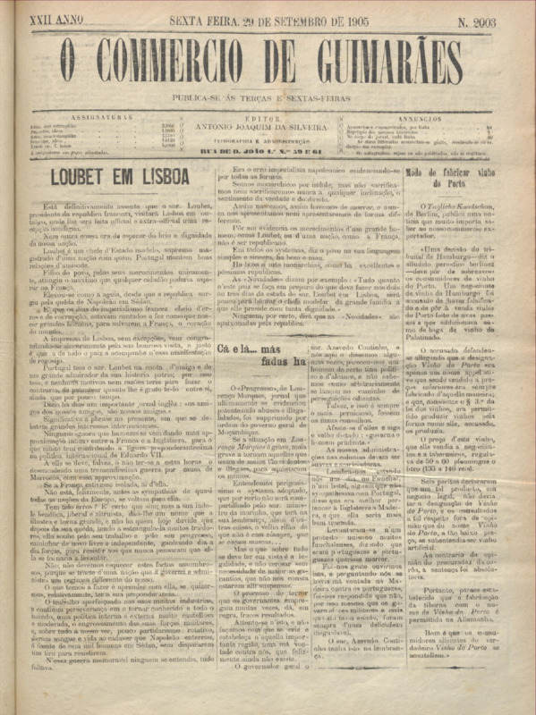 Comércio de Guimarães, nº 2003, de 29/09/1905