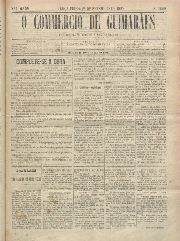 Comércio de Guimarães, nº 2002, de 26/09/1905