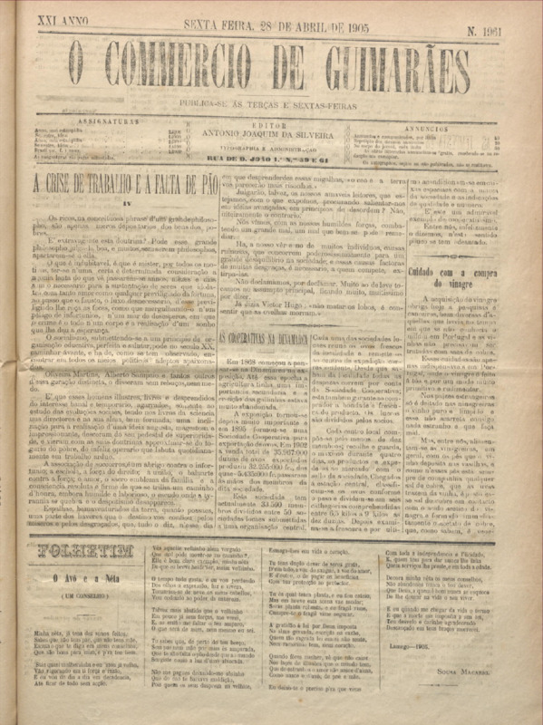 Comércio de Guimarães, nº 1986, de 28/07/1905