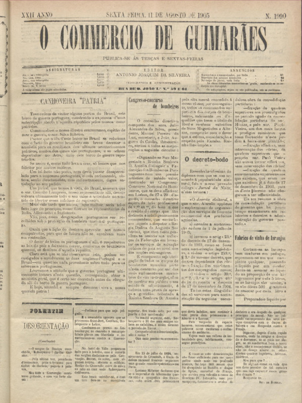 Comércio de Guimarães, nº 1990, de 11/08/1905