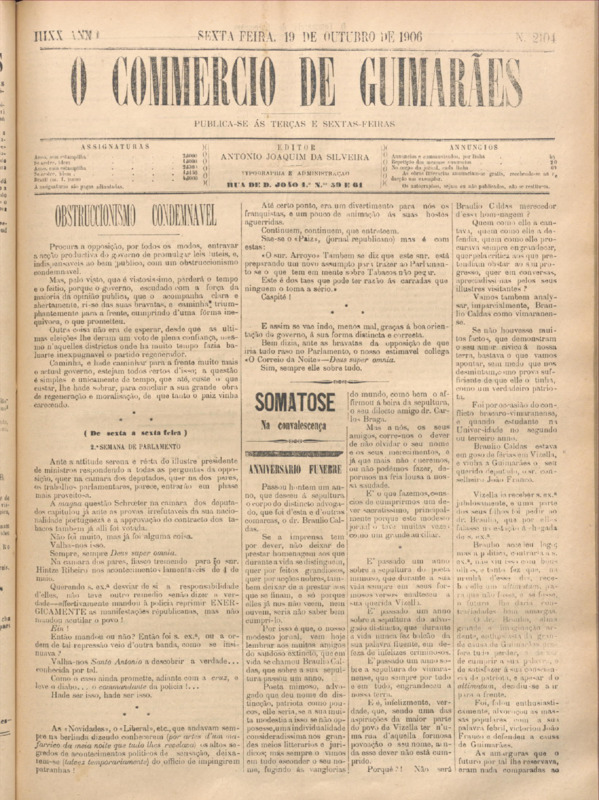 Comércio de Guimarães, nº 2104, de 19/10/1906