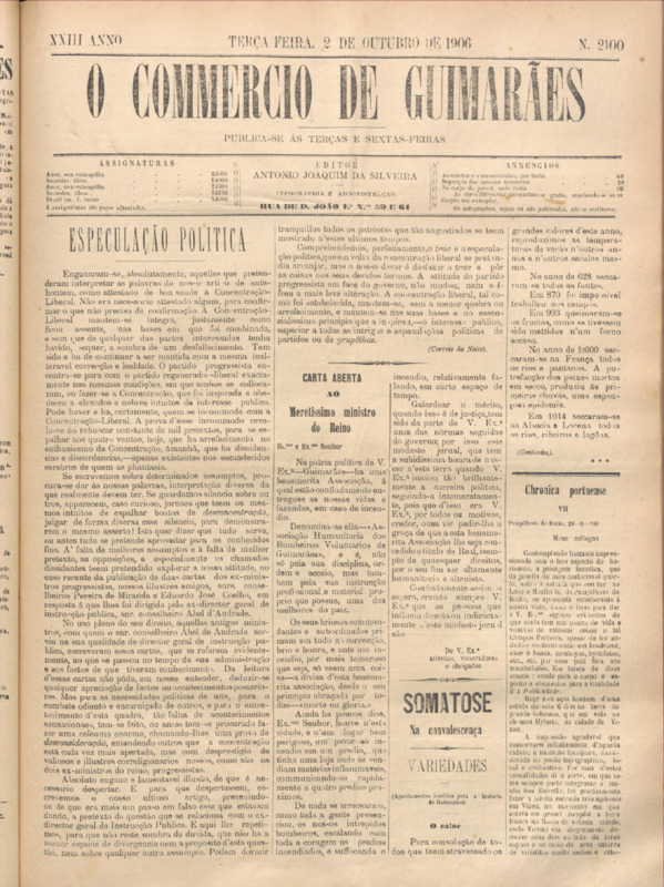 Comércio de Guimarães, nº 2100, de 02/10/1906